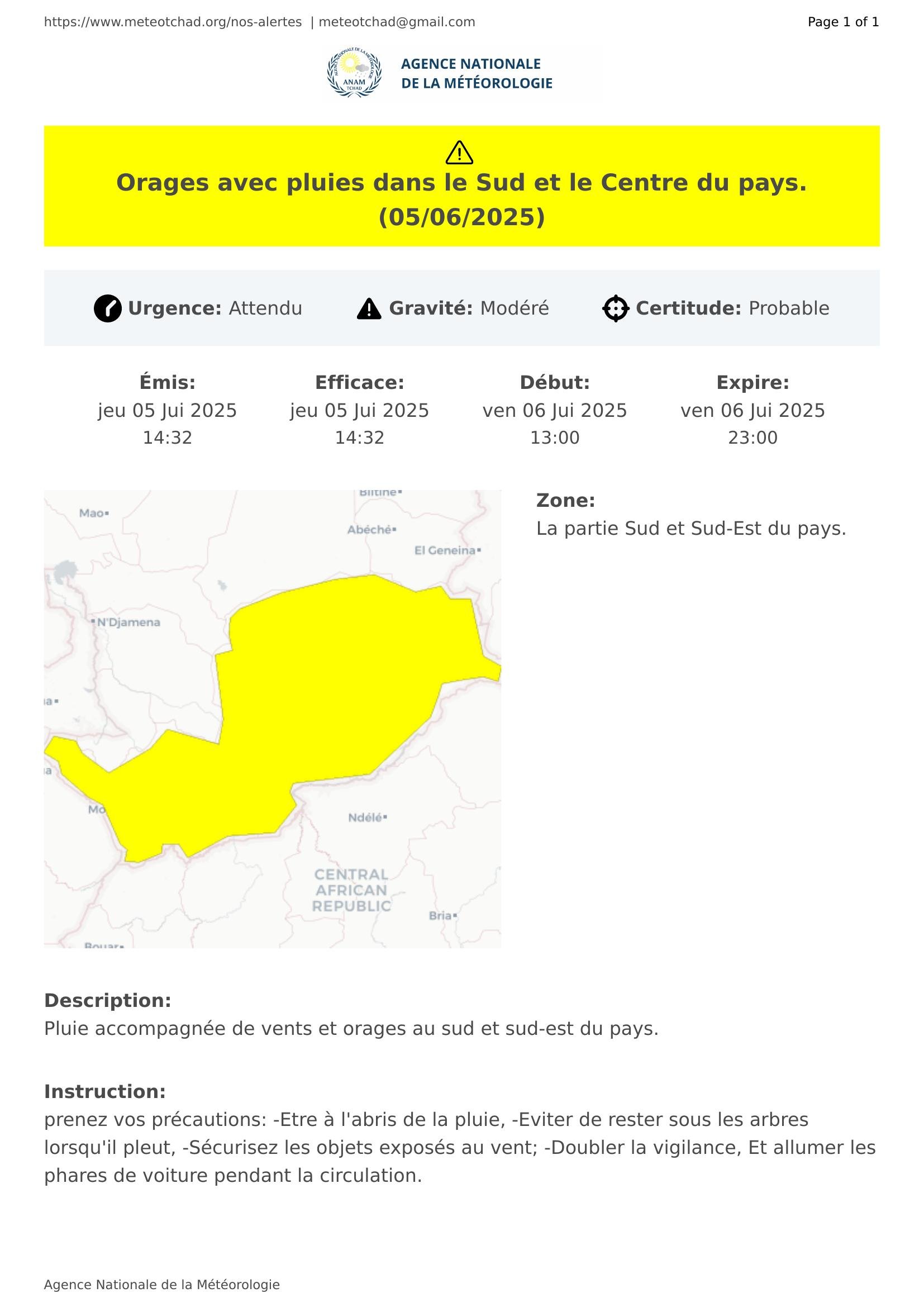 Orages avec pluies dans le Sud et le Centre du pays.(05/06/2025)